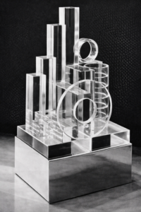 Les jeux de transparence du verre, les reflets du métal chromé et les volumes rigoureusement construits confèrent à chaque lampe une dimension presque sculpturale. Allumées ou éteintes, ces pièces conservent une force visuelle autonome, caractéristique des grands objets de design.